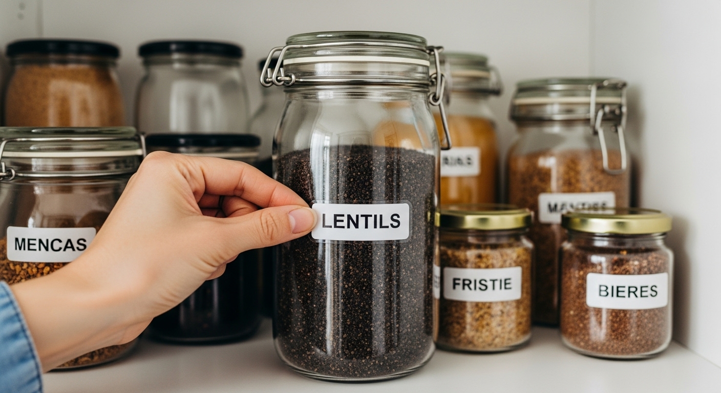 Una etiqueta no es un recordatorio para ti, que ya sabes lo que hay en el bote. Es una instrucción clara para todos los demás. Elimina las suposiciones y la pereza de pensar «esto aquí más o menos». Convierte la acción de guardar algo en un acto casi automático.